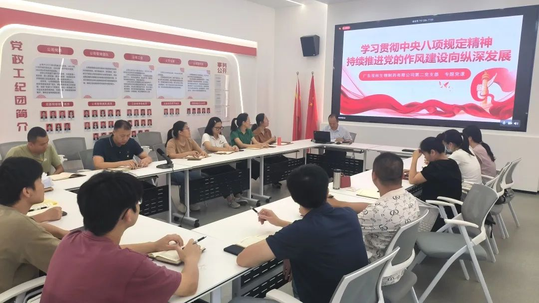 近日,广东双林生物制药有限公司组织2025年四月份党建工作日活动,旨在推进深入贯彻中央八项规定精神学习教育落地见效,推动党建与业务工作深度融合。