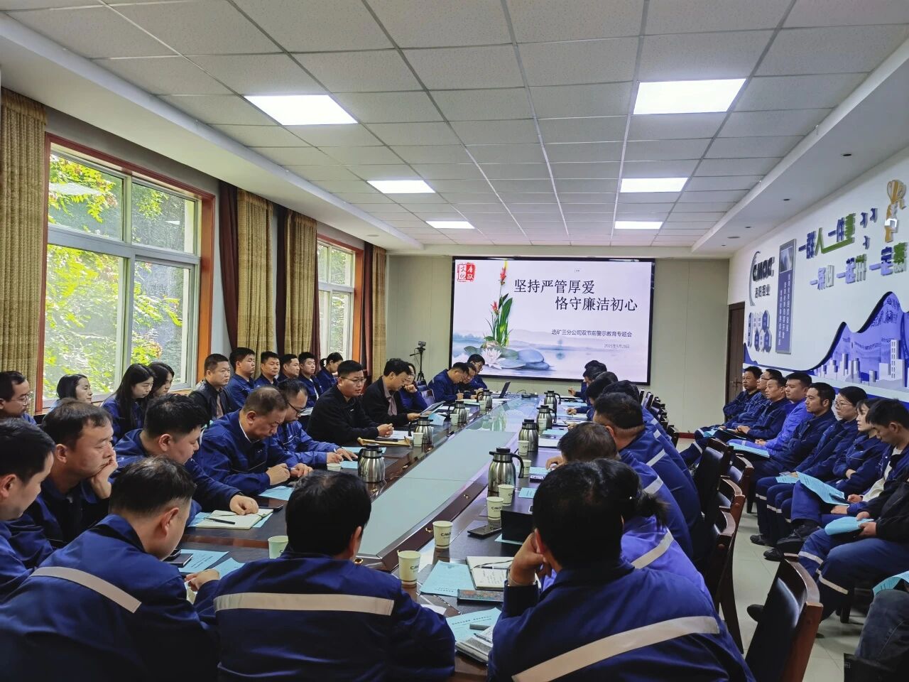 在2025年“国庆、中秋”双节即将来临之际,为深入贯彻落实《洛钼集团高压线管理制度》要求,进一步增强全体干部职工的廉洁自律意识,营造风清气正的节日氛围,选矿三公司于9月29日召开了一场意义深远的“坚持严管厚爱,恪守廉洁初心”双节警示教育专题会议。公司领导班子成员、副科级以上干部、关键敏感岗位人员等50余人齐聚一堂,共同接受廉政文化的教育与洗礼。