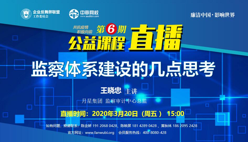 2020年03月23日swendy第六期在线课程我们邀请协会理事单位月星集团王晓忠与大家一起走心细述监察体系中文化建设的重要性、体制建设实施方法以及需要关注的重点。本期直播课堂人气高涨,互动紧密,下面让我们再次感受课程的心得体会和宝贵经验