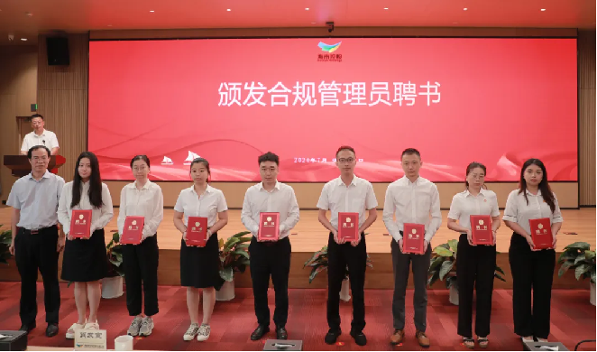 会上,海南控股党委副书记肖发宣向各部门兼职合规管理员颁发聘书,海南控股党委委员、副总经理肖飞主持会议并发布合规管理指导文件汇编,海南机场、海南金控围绕合规工作经验进行分享交流。