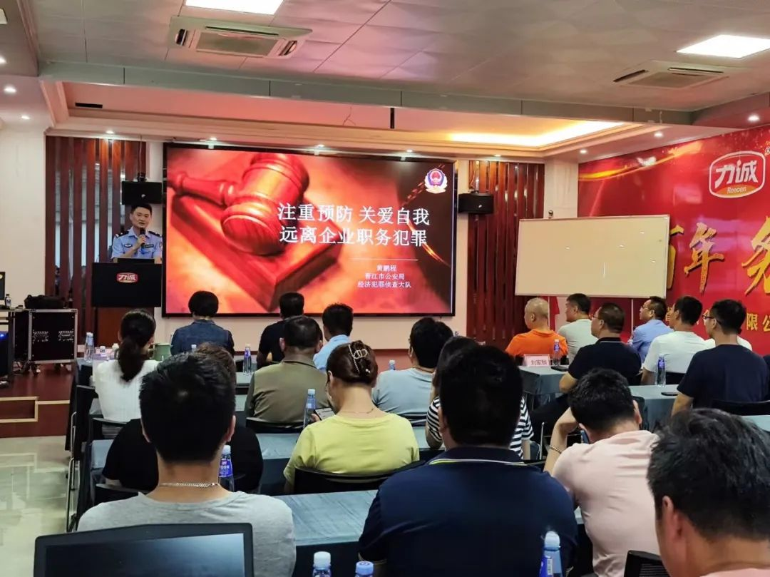 7月8日下午,力诚食品特别邀请晋江市公安局的相关领导和专家为广大干部员工开展了主题为《警企联勤 共筑廉防》专题培训。