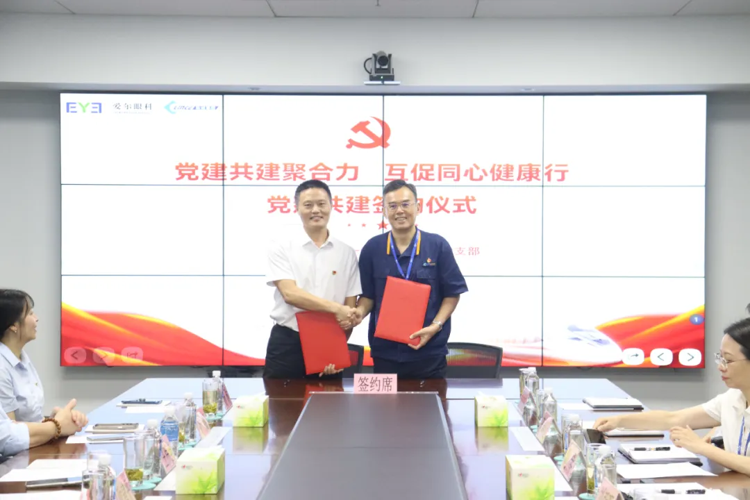 爱尔眼科集团党委专职副书记欧建平与联诚集团党委书记刘朝晖,代表双方企业党组织签署了党建共建协议。双方围绕“科技 医疗”的合作模式,就如何相互赋能、共同推动高质量发展进行深入热烈的交流讨论。